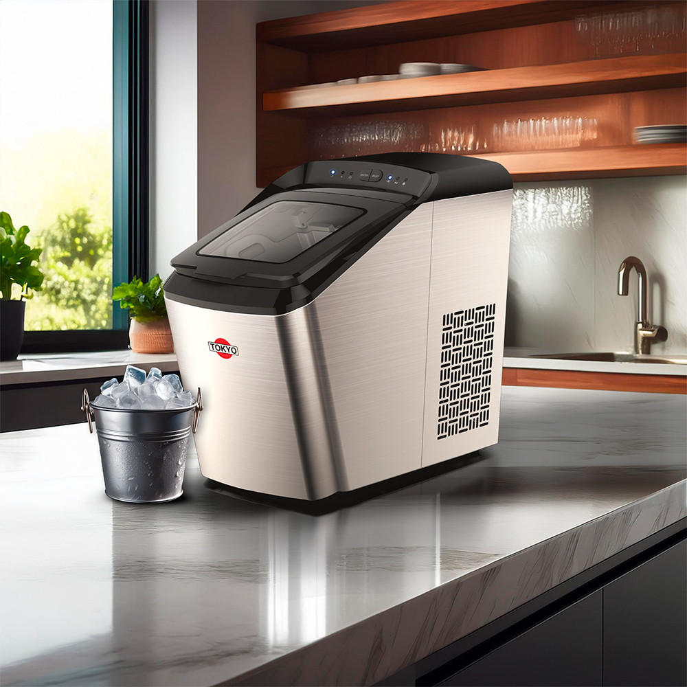 Fabrica tus hielos para que tus bebidas estén más frías, con esta increíble fabricadora de hielo Tokyo de 15 kg.