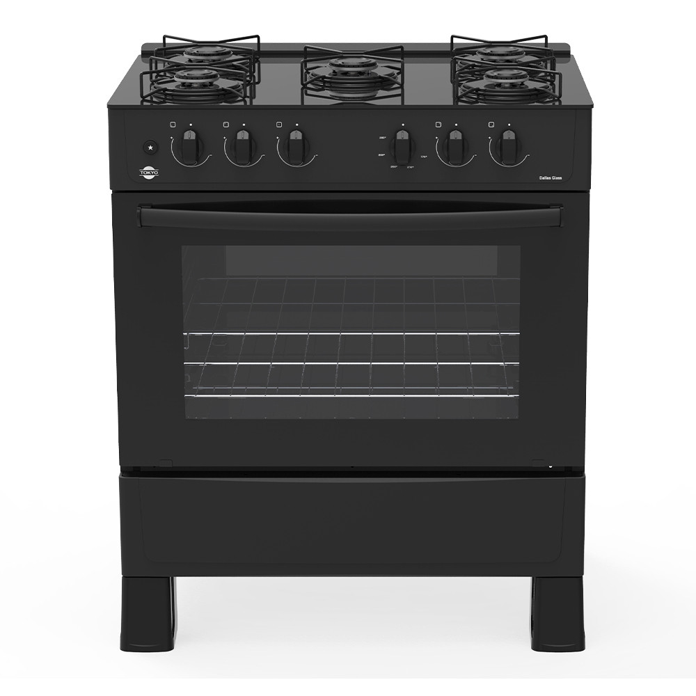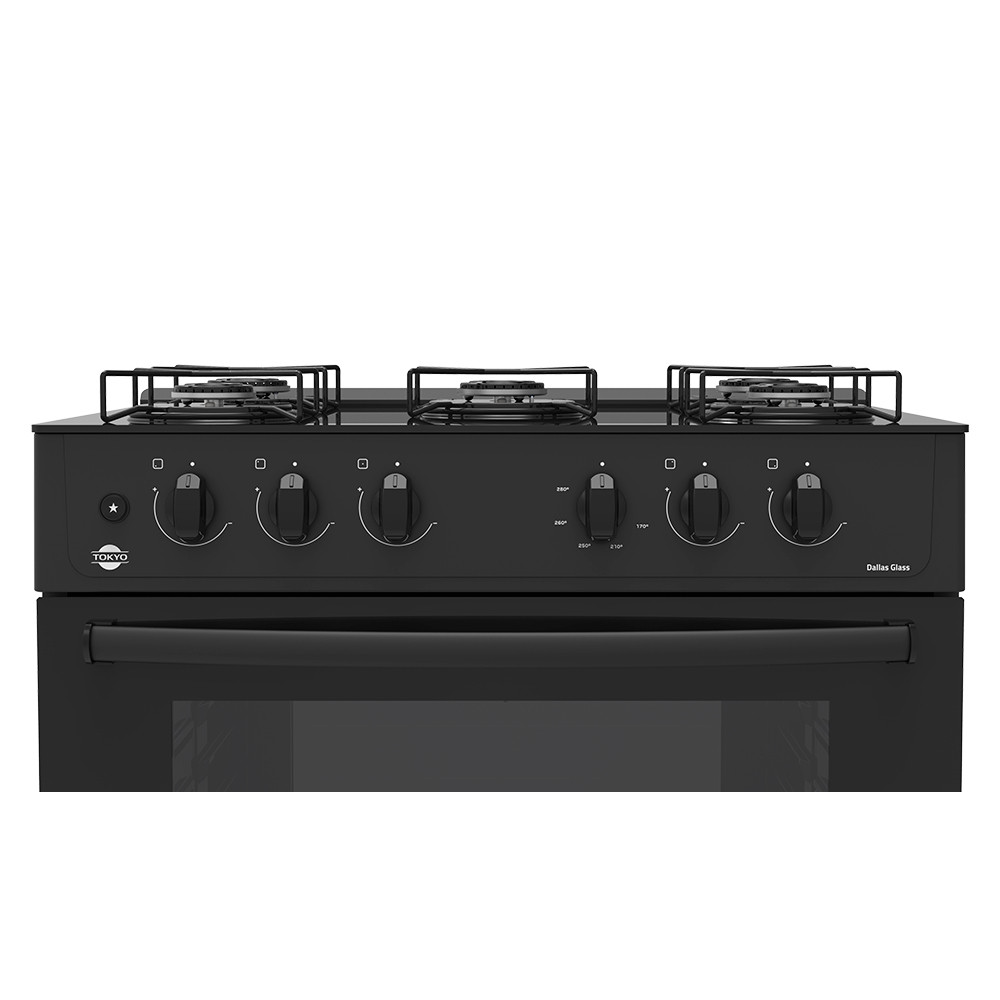 COCINA A GAS TOKYO DALLAS GLASS NEGRO 5H C/E HORNO 94 LTS LIMPIA FACIL