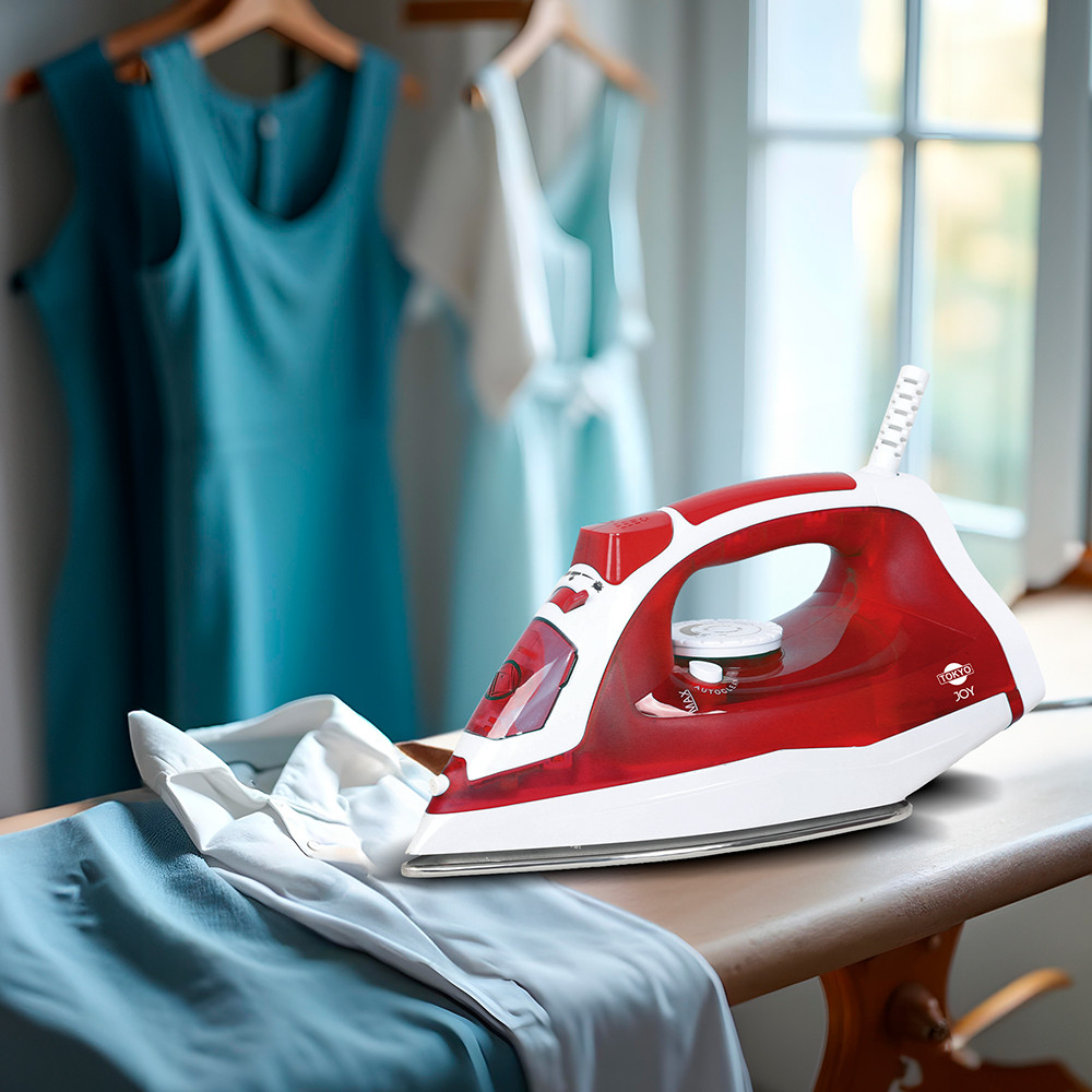 La plancha a vapor Tokyo JOY cuida y deja tu ropa sin arrugas, con una potencia de 2000W, base cerámica y vapor vertical y horizontal.