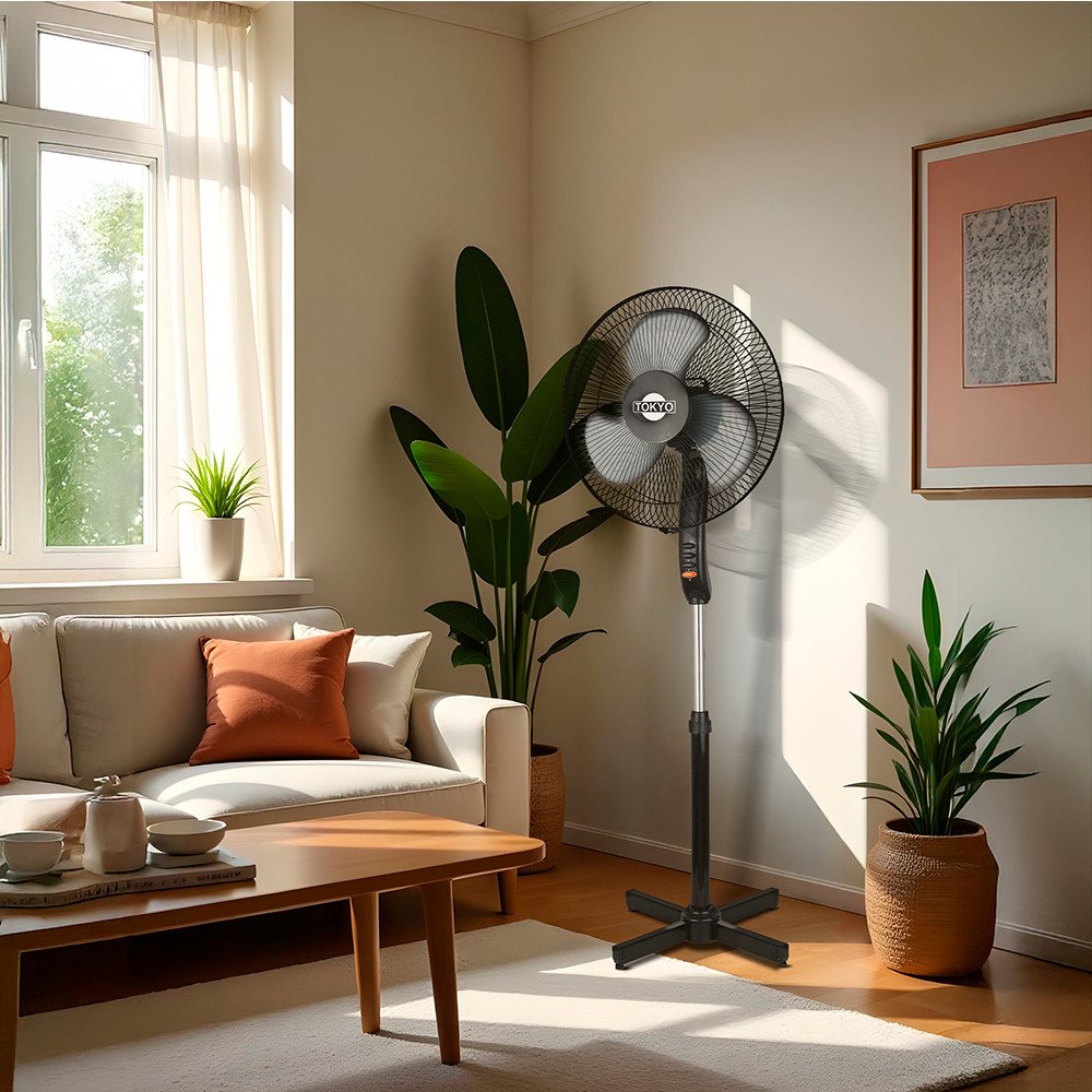 Hacele frente al calor con este ventilador de pie Tokyo, cuenta con aspas de plástico y con 40W de potencia.